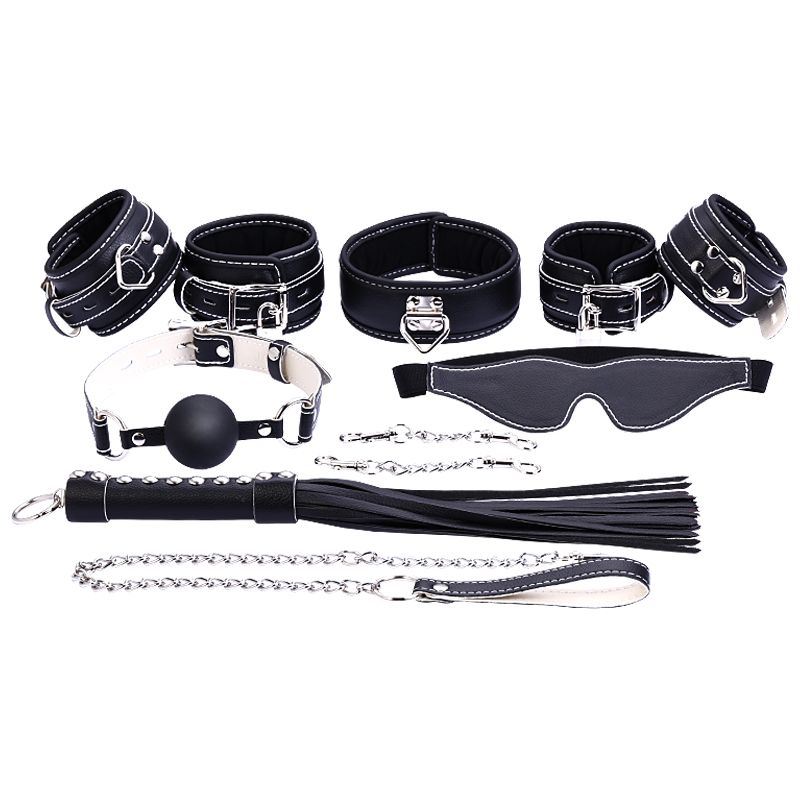单品名称:眼罩、口塞、脖套、牵狗链、手铐、脚铐、皮鞭。